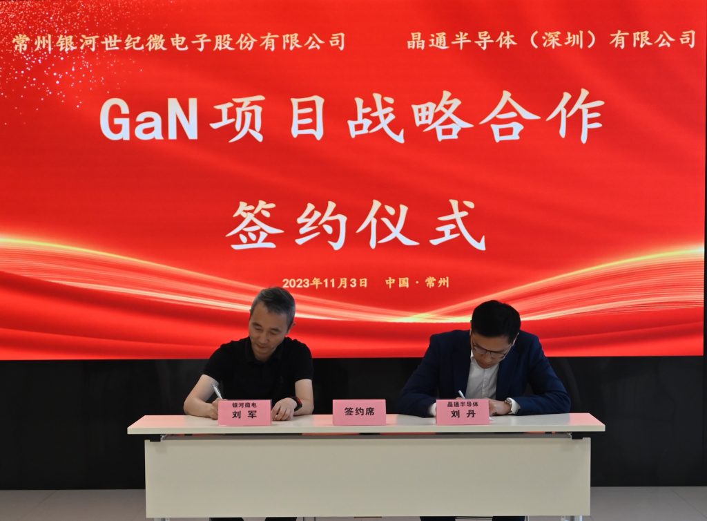 2023年11月3日上午,在上海聚源聚芯集成電路產(chǎn)業(yè)股權(quán)投資基金中心的見證下,我公司與晶通半導(dǎo)體(深圳)有限公司在常州舉行了GaN項(xiàng)目戰(zhàn)略合作簽約儀式。常州銀河世紀(jì)微電子股份有限公司董事長(zhǎng)楊森茂、總經(jīng)理劉軍及晶通半導(dǎo)體(深圳)有限公司總經(jīng)理劉丹等人員出席簽約儀式。